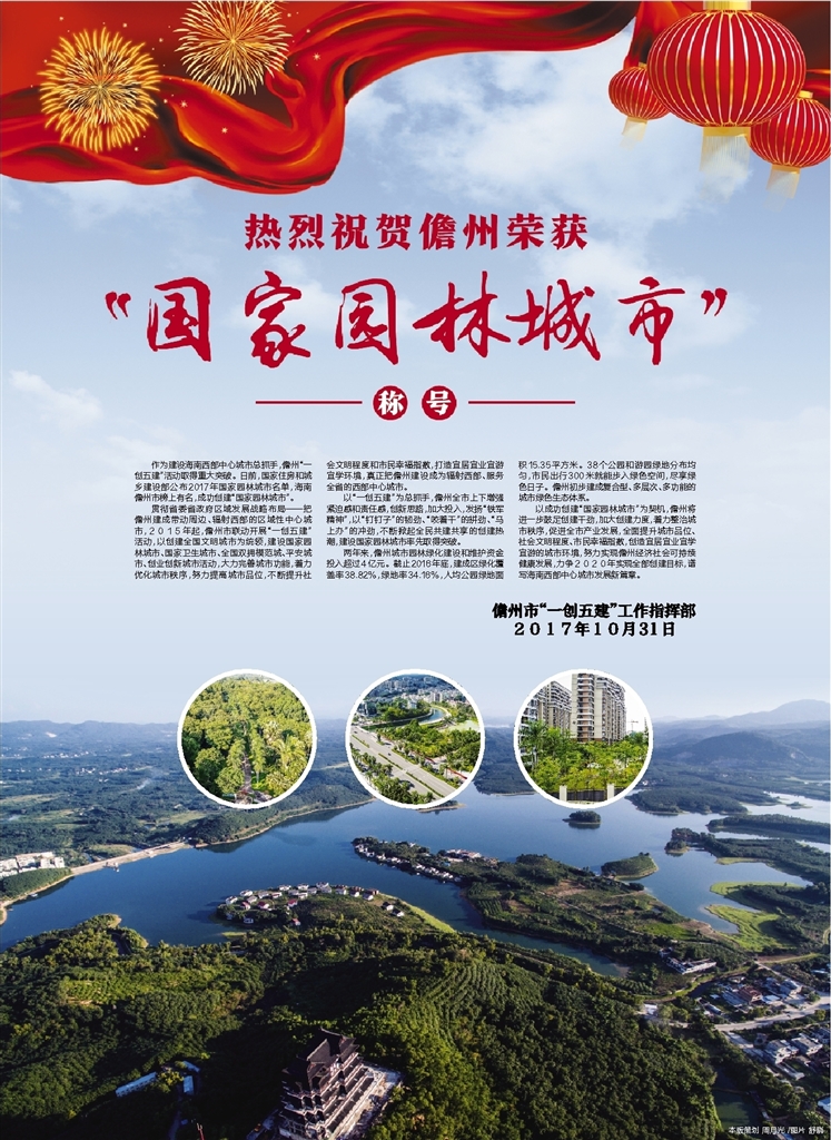 以成功创建“国家园林城市”为契机,儋州将进一步鼓足创建干劲,加大创建力度,着力整治城市秩序,促进全市产业发展,全面提升城市品位、社会文明程度、市民幸福指数,创造宜居宜业宜学宜游的城市环境,努力实现儋州经济社会可持续健康发展,力争2020年实现全部创建目标,谱写海南西部中心城市发展新篇章。