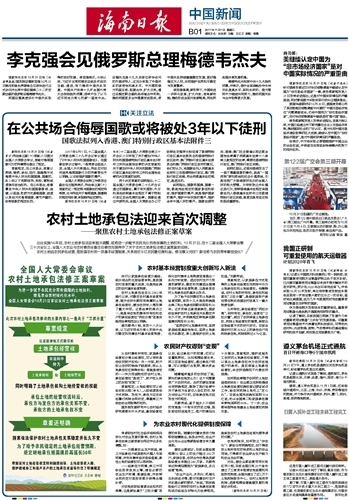 海南日报 中国新闻 009 2017-11-011 2017年11月01日 星期三