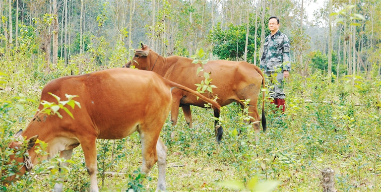 记者注意到,蔡於旭的小黄牛大部分时间均被放在林中散养,吃野草、饮山泉,让它们很快便获得了追求健康、绿色饮食的消费者喜爱。“我已经于去年10月份申请了澄迈慧牛商标,如今我通过主打绿色、原生态的品牌,并利用电子商务平台、众筹等方式,已经把这些牛肉卖到每斤40元至45元,销路更是不用愁。”