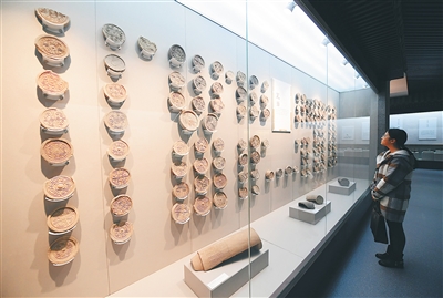 11月2日,一名学生在陕西师范大学教育博物馆历史文化馆内参观。 11月1日,陕西师范大学教育博物馆正式开馆,并免费向社会开放。教育博物馆由我国著名建筑设计师张锦秋院士主持设计,总建筑面积2.3万平方米,展厅面积约7000平方米,展藏物品近万件,内设中国教育馆、妇女文化馆、书画艺术馆、历史文化馆、校史展览馆等五个展区。 新华社记者 邵瑞 摄