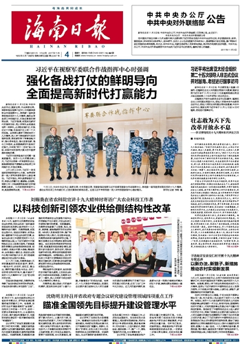 海南日报 头版 001 2017-11-041 2017年11月04日 星期六