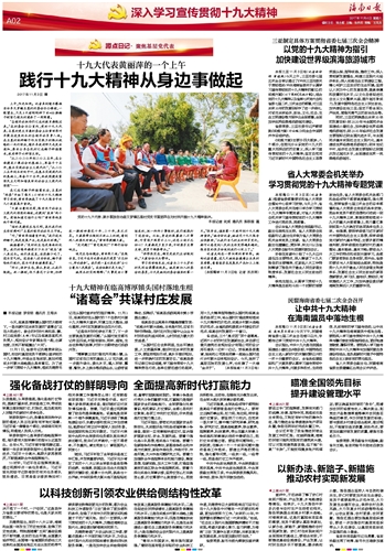 海南日报 深入学习宣传贯彻十九大精神 002 2017-11-041 2017年11月04日 星期六