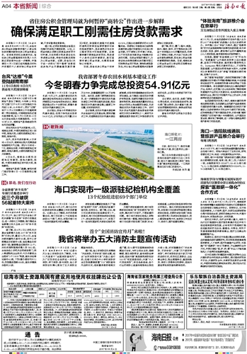 海南日报 本省新闻综合 004 2017-11-041 2017年11月04日 星期六