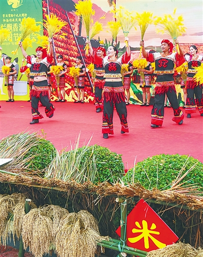 上午,从省内各地赶来的游客在嘹亮的黎族山歌声中,见证了传承千年的庆丰收仪式。身着盛装的黎族同胞手捧山兰稻穗,按照古老祭礼,在感谢自然馈赠的同时,也祈祷来年丰收及全村平安。