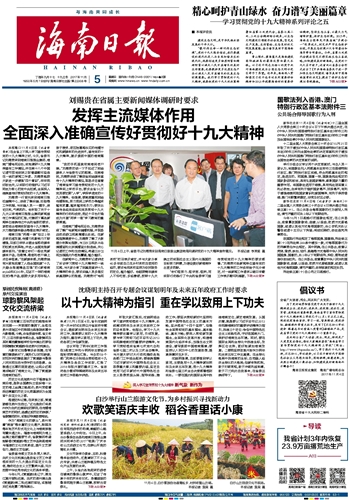 海南日报 头版 001 2017-11-051 2017年11月05日 星期日