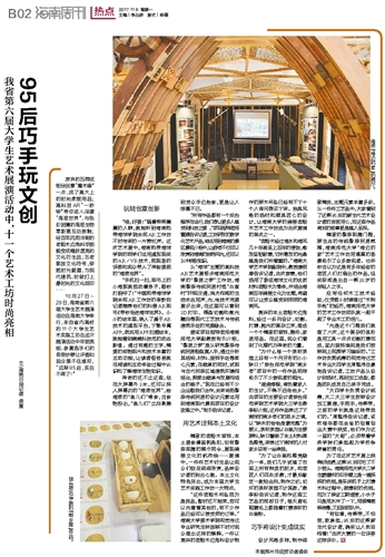 10月27日-29日,海南省第六届大学生艺术展演活动在海南大学举行,来自省内高校的11个大学生艺术实践工坊在此次展演活动中华丽亮相,参赛选手们的奇思妙想让评委和观众禁不住感叹,“这帮95后,实在不得了!”