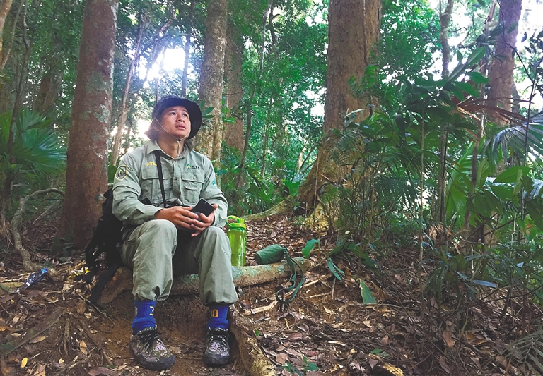 10月25日,参加2017海南长臂猿大调查的52人组成了监测队,我分在第一组,监测目的地在南叉河。中午各组出发奔赴各自的监测点。15时多,我所在的第一组驱车赶到南叉河山脚下,背起行囊徒步向目的地进发。傍晚时分,我们赶到监测点营地生火煮饭,支帐篷,在简易房内安顿睡铺。在烛光晚餐中,大家谈论着历次监测长臂猿过程中的趣闻,以及曾经在巡山中看到过的动物、稀有植物等,欢声笑语过后,大家早早入睡。帐篷外的风吹得热带雨林中的树叶哗哗作响,如同下雨般,令人难以入眠。