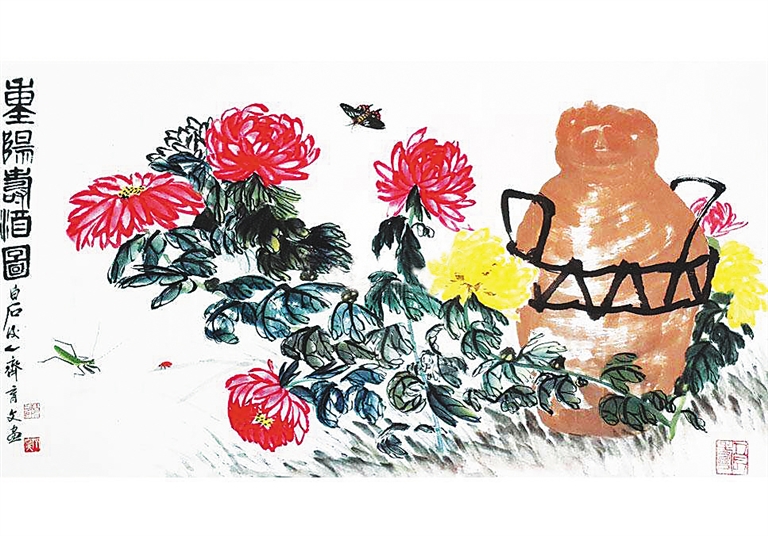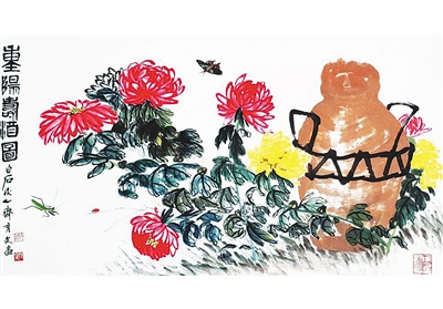 大雁排成行向南方飞去,菊花开得正灿烂。菊花,别名菊华、秋菊、九华、黄花、帝女花等,是中国传统名花。菊花不仅有飘逸的清雅、华润多姿的外观,幽幽袭人的清香,而且具有“擢颖凌寒飙”“秋霜不改条”的内质。春夏秋冬,四季轮回,乃恒古不变的自然规律。屈原用“春兰兮秋菊,长无绝兮终古”来诠释这个道理,于是菊花便成了秋天的典型代表。菊花是秋天的笑容,菊花是秋天的色彩。菊花绽放在苗圃村郭,暗香袭人不醉人,其风姿神采,自古受人敬重。“采菊东篱下,悠然见南山”(陶渊明《饮酒》其五),辞官归田后的陶渊明,采菊东篱,在闲适与宁静中偶然抬起头见到南山,人与自然的和谐交融,达到了王国维所说的“不知何者为我,何者为物”的无我之境。杜牧《折菊》诗:“篱东菊径深,折得自孤吟。”篱笆东边菊花丛根深叶茂,折取一枝孤吟陶诗,悠然而洒脱。“东篱把酒黄昏后,有暗香盈袖。莫道不消魂,帘卷西风,人比黄花瘦。”李清照笔中的菊花,花瘦不如人瘦,人瘦不如心瘦,一个瘦字,写尽了人世间的离愁别恨。