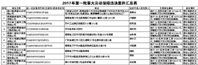 关于公布2017年第一批重大劳动保障违法案件的公告