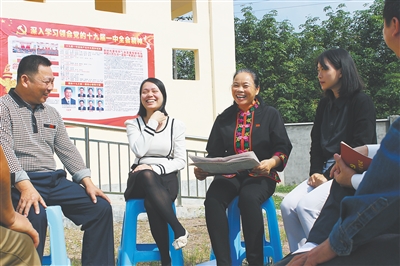 到番打小学上班才一个星期的年轻女教师何小妹、许萍,都是从师范类院校毕业,分别教英语、数学课。望着学校四周绿意盎然的大山,何小妹激动地说:“我对王金花老师的事迹十分钦佩,听了她对十九大精神的宣讲后,更加坚定了我为边远山区教育事业作贡献的决心和信心!”