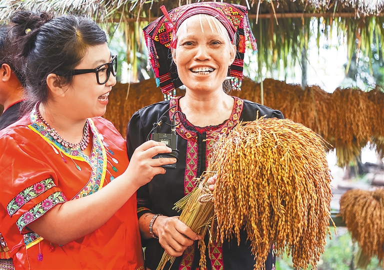 推广了山兰稻米,丰富多彩的黎族传统农耕文化也通过文字、图片、视频的形式做了生动的展现。看到自己身着传统服装的照片登上了报纸,拥处村村民符莲香激动地拿着报纸向亲朋友好友们展示。