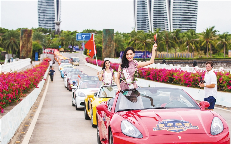 “你们好!谢谢!我爱三亚!”巡游花车上的参赛佳丽们,特地向中方工作人员请教简单的普通话,现学现用,当场与市民游客招手互动。