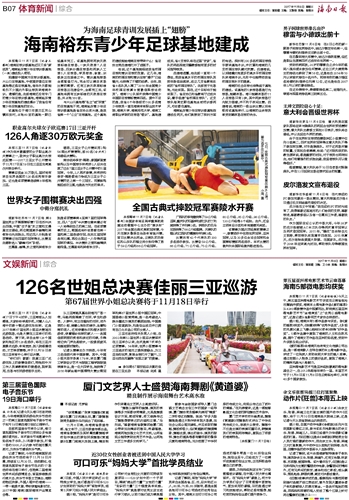 海南日报 体育新闻综合 015 2017-11-081 2017年11月08日 星期三