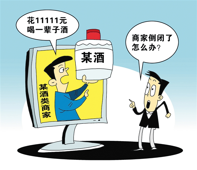 “双十一”临近,商家纷纷应机而动,使出浑身解数各式推销,企图从中分一杯羹。这不,竟有商家推出让人大跌眼镜的“一生一世的酒”。该促销看似实惠,可细细琢磨,猫腻颇多。现在包票打得很响,但一生一世毕竟成本高昂,商家是否真正承担得起?再者说,时间如此之长,如果商家破产了,或者商品质量跟不上,消费者又该找谁理论?打折促销无可厚非,但推销不能推过了头,一味地只想着从顾客兜里圈钱。这正是: