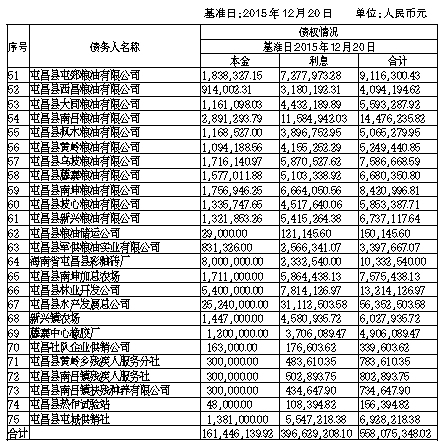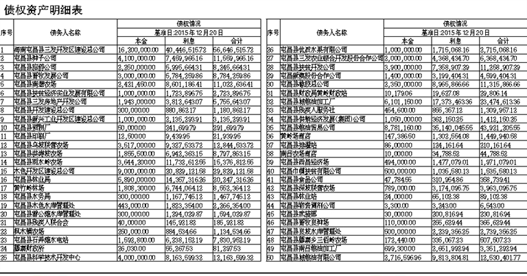 屯昌县国有资产经营有限公司作为上述债权的受让方,现公告要求公告清单中所列债务人及其担保人,从公告之日起立即向屯昌县国有资产经营有限公司履行主债权合同及担保合同约定的还本付息义务或相应的担保责任。