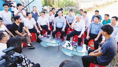 11月9日下午,基地迎来了一批特殊的客人——中央宣讲团成员,科技部党组书记、副部长王志刚一行。他们在省委常委、三亚市委书记严朝君及副省长王路的陪同下,把党的十九大精神送到了田间地头。