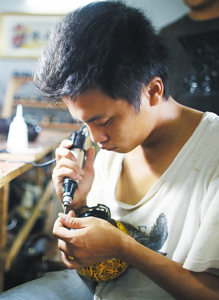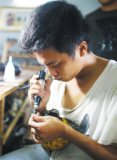 海南爱心椰雕工艺品有限公司总经理张必弟已经和椰子壳打了6年交道,从椰壳雕刻做起,带动周边残疾人在家门口就业,企业逐渐发展到100多人的规模,但目前仍处于作坊式的生产模式。在公司位于琼海市龙寿洋国家农业公园的一处椰雕工作室,记者看到,在一堆堆椰壳原材料的包围中,工作室只有简单几张工作台。“由于椰子原料的特殊性,我们很难做到规模化流水线生产,大都还是手工加工的方式,即便有大的订单,也实在没有能力接。”张必弟说。