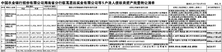 中国信达资产管理股份有限公司海南省分公司作为上述债权的受让方,现公告要求公告清单中所列债务人及其担保人,从公告之日起立即向中国信达资产管理股份有限公司海南省分公司履行主债权合同及担保合同约定的还本付息义务或相应的担保责任。