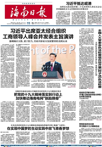 海南日报 头版 001 2017-11-111 2017年11月11日 星期六