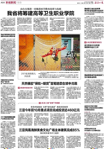 海南日报 本省新闻综合 004 2017-11-111 2017年11月11日 星期六
