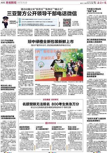 海南日报报业集团旗下媒体: 海南日报 |南国都市报 |南海网 |南岛晚报 |证券导报 |法制时报 |海南农垦报 设为首页