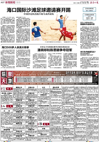 海南日报 体育新闻综合 007 2017-11-111 2017年11月11日 星期六