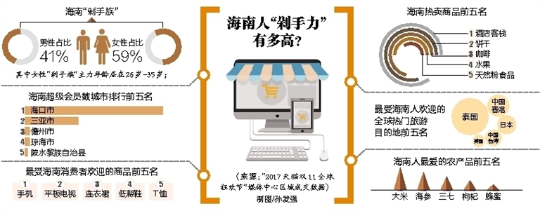 “‘双11’可以说是淘宝海南馆千余个商家的盛典,我们这一年都在为这一天做准备!”淘宝海南馆运营商三亚海源智联科技有限公司总经理文浩在接受记者电话采访时表示,截至11月11日上午10时,淘宝海南馆的成交额已达1100万元,预计全天成交额与去年“双11”当天成交额3000万元基本持平。“今年水果卖得最好,其中火龙果最受欢迎。南国食品、南山寿果、白沙兰贵人茶叶这3个品牌的产品销量较高,主要销往江浙沪一带。”