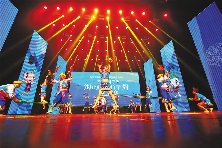 记者现场看到,晋级队伍中的海口市晴伊舞团,参赛时将海南传统元素与竹竿舞有机结合,通过精心编排的舞蹈,向观众展示了山兰酒酿造及黎锦制作等场景。