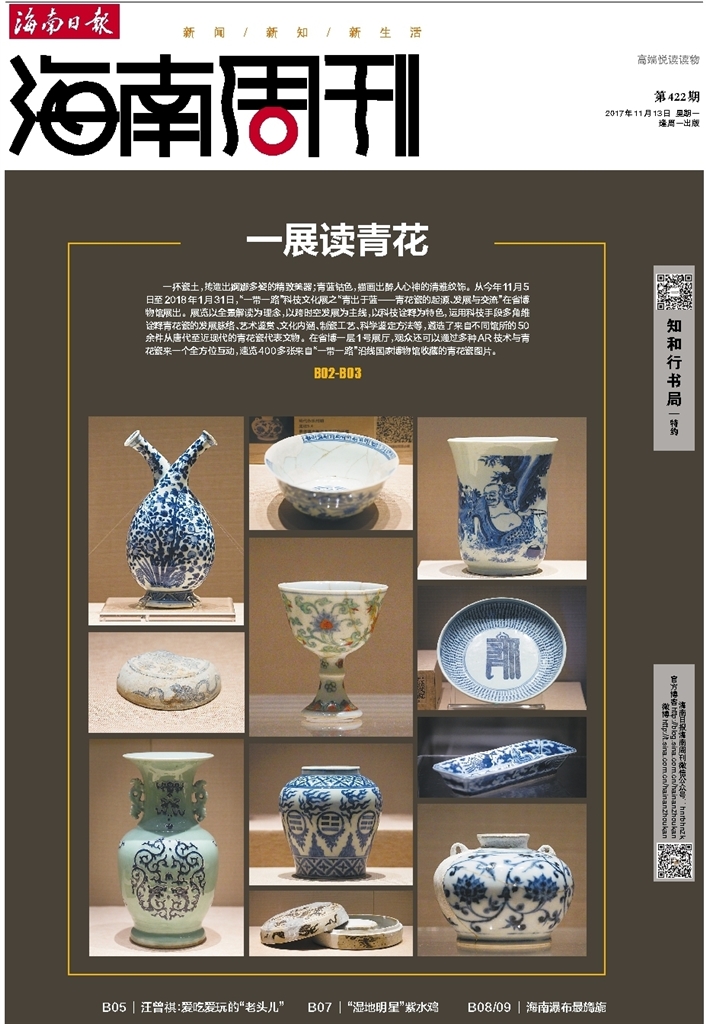 一抔瓷土,抟造出婀娜多姿的精致美器;青蓝钴色,描画出醉人心神的清雅纹饰。从今年11月5日至2018年1月31日,“一带一路”科技文化展之“青出于蓝——青花瓷的起源、发展与交流”在省博物馆展出。展览以全景解读为理念,以跨时空发展为主线,以科技诠释为特色,运用科技手段多角维诠释青花瓷的发展脉络、艺术鉴赏、文化内涵、制瓷工艺、科学鉴定方法等,遴选了来自不同馆所的50余件从唐代至近现代的青花瓷代表文物。在省博一层1号展厅,观众还可以通过多种AR技术与青花瓷来一个全方位互动,速览400多张来自“一带一路”沿线国家博物馆收藏的青花瓷图片。 B02-B03
