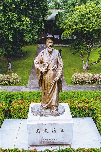 与东坡同属北宋的李光在七言古诗《载酒堂》中,盛赞“东坡文章喧宇宙,粲如日星垂不朽”,尽管斯人已逝但载酒堂树木仍在,“半是东坡亲手植,老干樛枝互缠纠”。