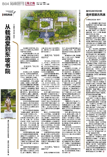 苏东坡谪居儋州三年,留下载酒堂,后来发展为东坡书院,吸引着国内外游客和各界人士朝圣般前去参观游览。这是因为,东坡书院蕴藏着博大精深的东坡文化。