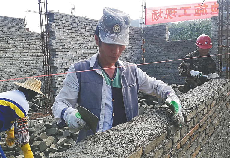 11月9日下午,记者来到贫困户务工的工地。他们学用合一,边培训边上班。黄帆告诉记者,在老师的教导下,他当天就学会了砌墙、拉线等技术。临近下班,工地负责人为这名新工友记下了当天的绩效:300元的劳务费用。看到一天劳动的收入就在眼前,黄帆很开心。“以后我应该能学到更多技术,也可以像村里装修能手一样出去干活赚钱了。”他说。