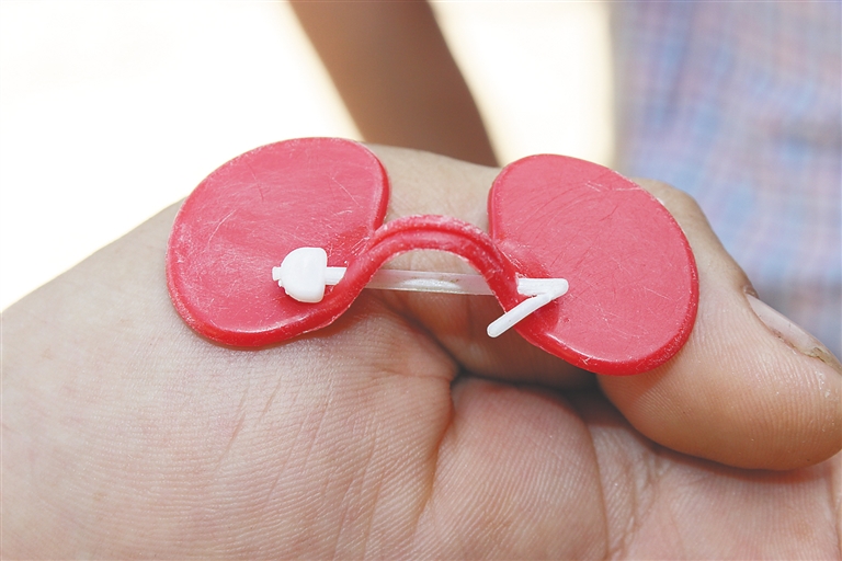 具有探索精神的唐后峰,抱着试试看的想法,迅速找有关厂家订制了多副胶质的红色镜片,造型与人戴的眼镜相似,也有鼻托。他将这些镜片固定在山鸡的双眼前,由于其视线被遮蔽了一部分,镜片颜色与鸡冠差不多,不但让山鸡们自身没有异常表现,相互之间也因“雾里看花”产生了“距离美”,变得“斯文”起来,从而扭转了以前的恶斗局面。