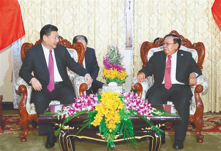 习近平强调,中老是社会主义友好邻邦,传统睦邻友好历久弥坚。建交56年来,双方政治互信不断增强,务实合作持续扩大,人文交流日益密切,两国关系全面深入发展,给两国人民带来实实在在的利益。中老理想信念相通,两国关系战略定位高远,发展空间广阔。中方始终珍视中老传统友谊,高度重视同老挝关系,愿同老方携手努力,不断丰富和发展高度互信、互助、互惠的中老全面战略合作伙伴关系,使两国永远做好邻居、好朋友、好同志、好伙伴。