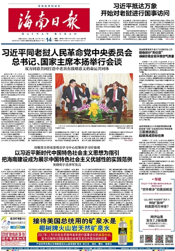 海南日报 头版 001 2017-11-141 2017年11月14日 星期二
