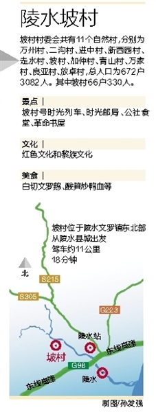 坡村的旅游建设可谓颇具特色:将打造的时光邮局、公社食堂、革命书屋等特色景点进行串联,通过“听红军讲故事”“领粮票吃革命餐” “模拟战场训练”等项目,仿佛将身着红军服装的游客带回革命年代。