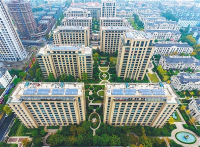 俯瞰已经安装完毕等待并网的慈溪市绿城玫瑰园小区的居民屋顶光伏。 根据浙江省能源局10月底发布的统计数据显示,浙江省家庭屋顶光伏并网户数已突破10万户大关,装机规模656兆瓦,并网户数和装机规模高居全国第一。 新华社记者 徐昱 摄
