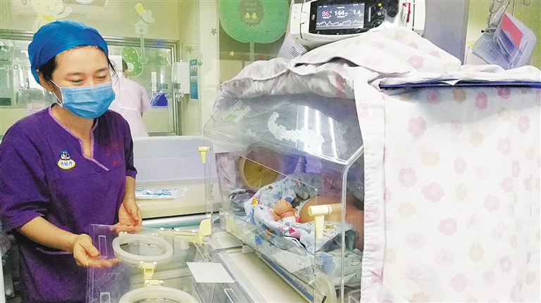 “从0.8千克长到1.7千克了,小家伙现在不需要治疗,只需要在保温箱里吃好喝好,体重达标就可以出院!”11月10日中午12点,在海南省妇幼保健院NICU(新生儿重症监护室)病房里,新生儿科护士史雅满怀激动地跟记者聊起早产儿小A崽(化名)的情况。史雅依然记得,2个月前,小A崽刚刚被送来的状态:全身呈半透明状,皮下血管清晰可见,整个身体仅比成人的巴掌大一点……