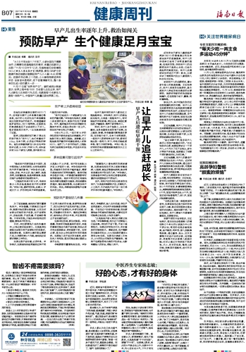 11月17日是“世界早产日”。据权威统计数据显示,世界上每年有1500 万名婴儿出生过早,早产儿占新生儿比例的10%左右,也就是每10名新生儿就有1例早产儿,中国早产儿数量已居世界第二位。