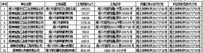 经查,你单位下列宗地(详见附表)存在超过动工开发时间满二年未动工开发的情况,经报海口市人民政府批准,认定下列宗地为你单位原因造成土地闲置,拟无偿收回该宗土地使用权。因你单位下落不明,我局无法直接向你单位送达《闲置土地认定书》和《听证权利告知书》,现予公告送达,本公告自登出之日起经过60日视为送达。如有异议,你方在本公告送达之日起5个工作日内可向本机关申请听证,本机关将依照《国土资源听证规定》依法组织听证。逾期未提出的,视为放弃听证。特此公告。