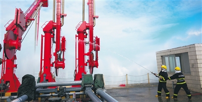 本次演练模拟一艘液化石油气船舶码头进行卸油作业时,管线法兰因密封损坏出现液化气泄漏,并引发船舶着火事故。事故发生后,船、岸双方迅速关闭进出阀口、切断管路阀门,启动应急预案,按照预案开展液化气泄漏事故原因探查、水雾墙稀释石油气、消防灭火等一系列措施,并通知清污公司做好清污准备工作。经过油船与岸上应急人员开展的应急堵漏与灭火抢险的配合与操作,成功处置了这起泄漏着火事故,确保了油库安全生产,演练取得成功。