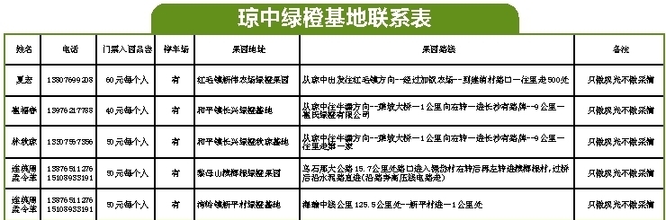 除了经销商,琼中在境内设有两处销售琼中绿橙的集中专卖区,一处是设在县城的水果批发零售市场,位于县城海榆路段(琼中汽车站往县政府方向约300米处),共有20个摊位;另一处设在高速公路乌石互通旁的湾岭物流园专卖区(乌石高速出口附近),共有45个摊位。
