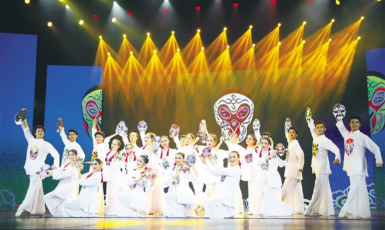 演出中,我省的歌舞演员们为现场的观众们带来了京剧舞蹈《脸谱》、舞蹈《三角梅之恋》等富有民族风情的歌舞。独具特色的舞蹈在炫丽的灯光下尽展海南魅力,演员们精彩的演出引来现场阵阵掌声与喝彩。