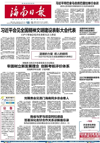 海南日报 头版 001 2017-11-181 2017年11月18日 星期六
