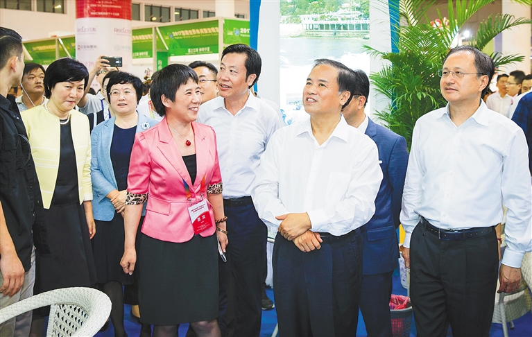 省委常委、海口市委书记张琦,省委常委、秘书长胡光辉参观世界休闲旅游博览会。副省长何西庆、爱尔兰威克洛郡郡长兼议会主席爱德华·蒂明斯分别在开幕式上致辞。省人大常委会副主任康耀红、省政协副主席丁尚清、罗马尼亚阿拉德县委员会主席尤斯汀·西昂卡、保加利亚驻华大使格里戈尔·波罗扎诺夫、克罗地亚驻华大使奈博伊沙·科哈罗维奇、卢旺达驻华大使查尔斯·卡勇加、菲律宾巴拉望省副省长维多利亚·丹尼斯·苏格拉底、爱尔兰威克洛郡议会副主席帕特里克·万斯等嘉宾出席。省政府秘书长陆志远主持开幕式。