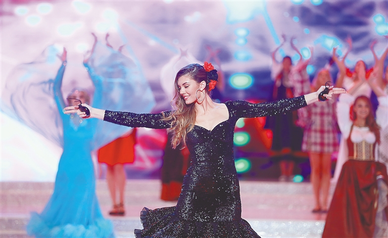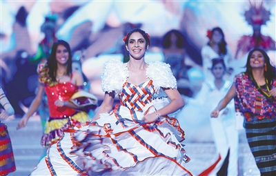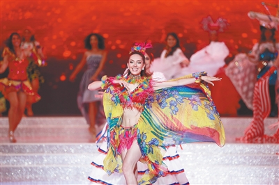 “凉凉天意潋滟一身花色……”一曲《凉凉》在18日晚世界小姐总决赛现场唱响,中国选手关思宇身着一袭大红色古装,扬起水袖柔情起舞,身后各国佳丽也跟着音律摇摆,浓浓中国风吹向镜头内外。