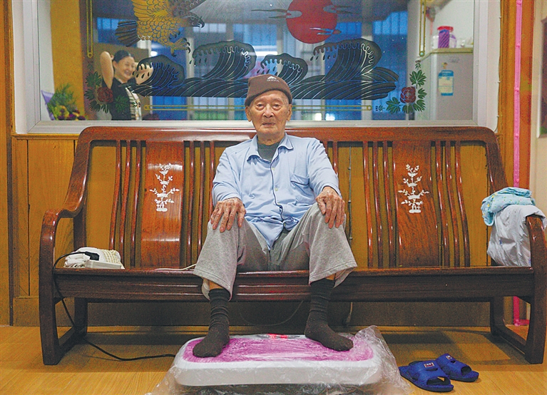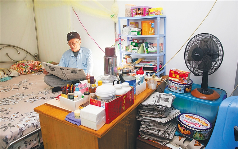 在李光侬老人的房间里,厚厚的一沓报纸堆放在桌前。平日里,李光侬常戴着眼镜、手持放大镜读书看报,他最喜欢阅读《参考消息》。老人也时常收看央视综合频道和国际频道,由于耳背,他看电视从来不开声音,只是认真地看画面、看字幕。
