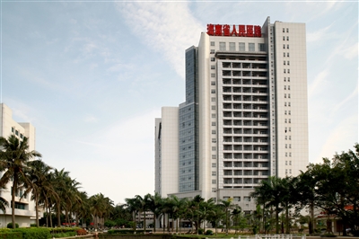 在海口市龙华路的北端,是海南省人民医院龙华院区门诊部,每日来就诊的人络绎不绝。走进医院大门,一栋9层高的门诊楼首先映入眼帘,这栋建于1989年的大楼依然是附近较高的建筑之一。