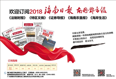 欢迎订阅2018海南日报 南国都市报 《法制时报》《特区文摘》《证券导报》《海南农垦报》《海岸生活》