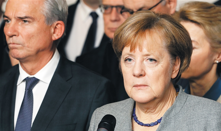 德国自由民主党(自民党)19日突然宣布退出正在进行的组阁谈判,标志着由总理默克尔领导的联盟党(由基民盟和基社盟组成)与自民党、绿党组成联合政府的方案失败。这意味着,在德国大选结束近两个月后,德国政坛再次面临未知。分析人士指出,如何安然度过组阁危机,是对总理安格拉·默克尔的真正考验。